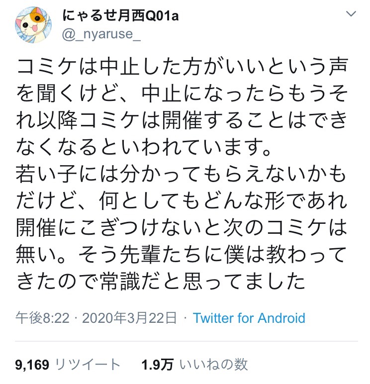 むしろこの状況で開催強行したら規制したい奴らの口実を作ってしまうだろ