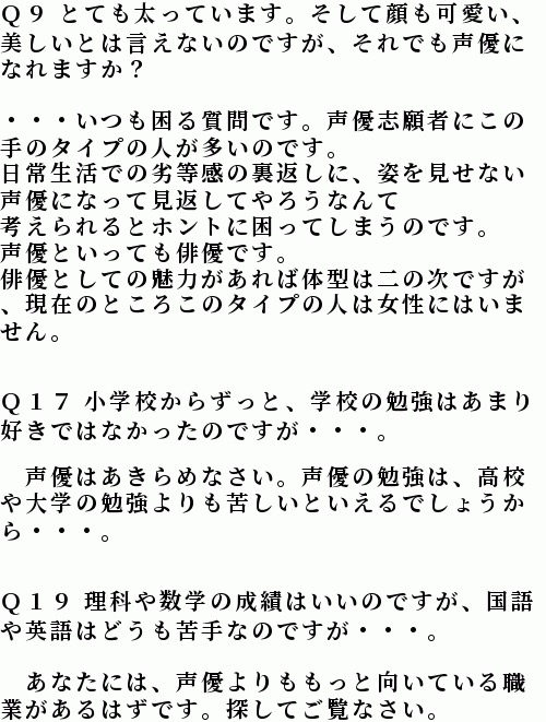 スパルタ教育で有名な今は無き「勝田声優学院」の現実を突きつけるQ&Aを!!