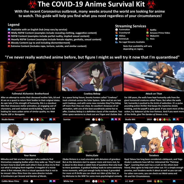 ホーム > ニュースetc > 外国人「コロナで自宅待機する人のために名作アニメリスト作ったぞ!」 2020/03/28 スレッド「新型コロナウイルスを生き抜くためのアニメキット」より。引用:Reddit 続きを読む Source: 海外の万国反応記 - ニュースetc