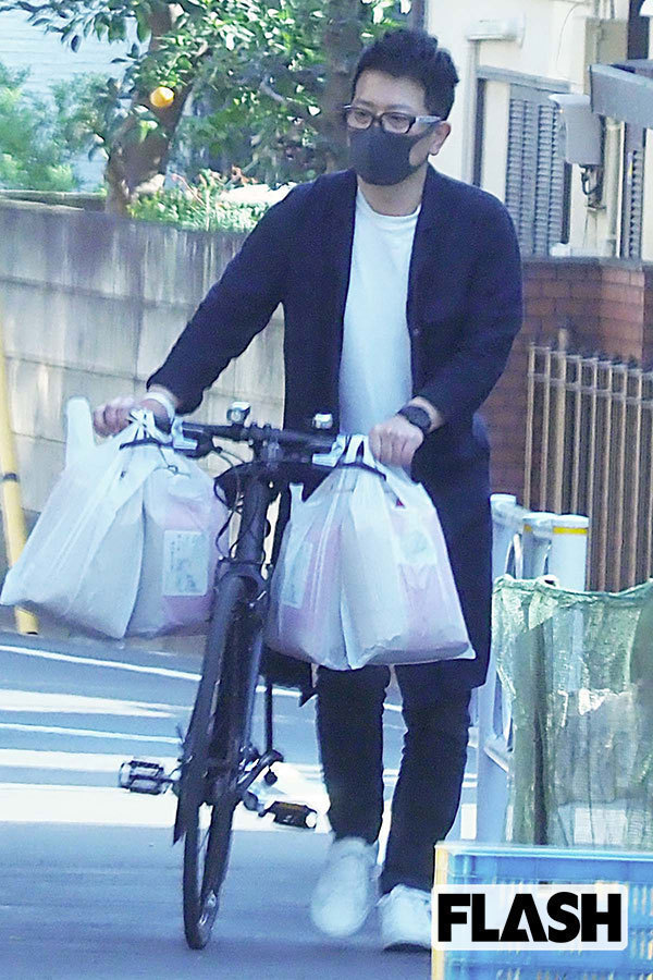 同日昼すぎ、周囲の目を気にするように、うつむきがちに自転車を押していたのは、黒マスク姿の宮迫博之(50)だ。自転車のハンドルには、重そうなビニール袋が何個も……。