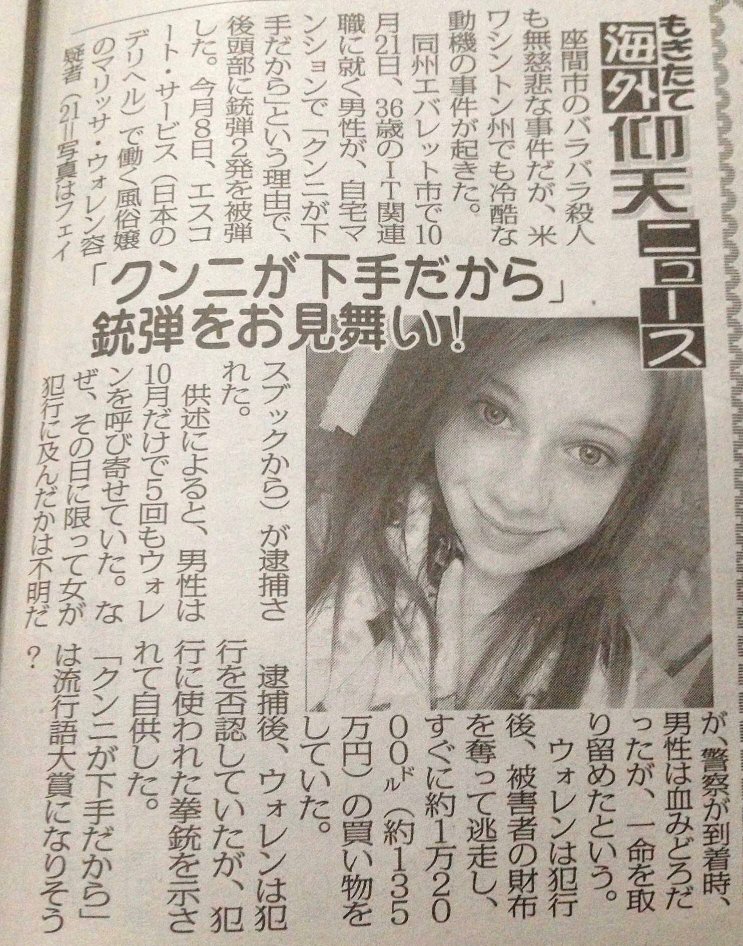 ホーム > ニュースetc > 【画像】デリヘル嬢「オッサンさぁ…ク○ニ下手すぎない?殺すよ?」後頭部に銃弾を2発撃ち込み逮捕 2020/04/12 1: 風吹けば名無し 2020/04/11(土) 23:27:21.63 ID:UA69ffyx0.net 続きを読む Source: 妹はVIPPER - ニュースetc