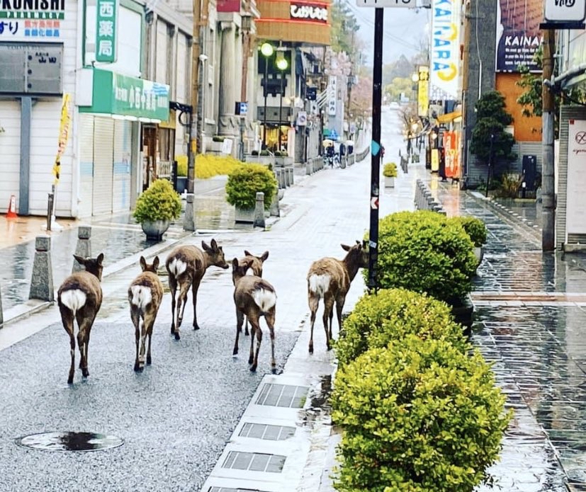 【悲報】外出自粛中の奈良県、鹿に支配される…