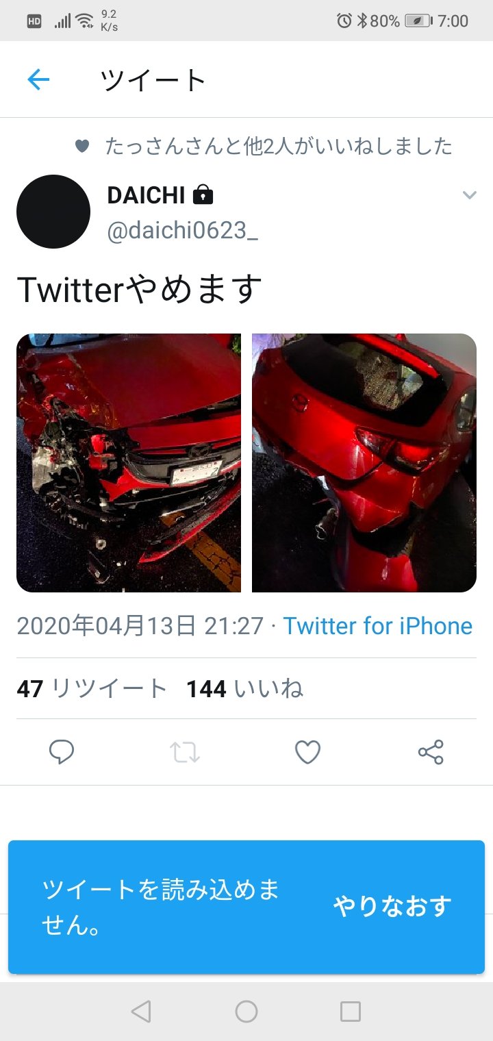 【悲報】バカッター、死亡事故を起こすも画像付きで呑気にツイート (※画像あり)