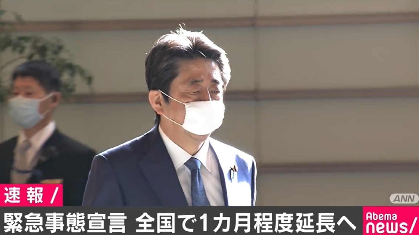 安倍晋三首相は1日、6日に期限を迎える新型コロナウイルスに関する緊急事態宣言を1カ月程度延長すると表明した。「現在の緊急事態宣言の枠組みをおおむね1カ月程度延長する」と述べた。専門家の意見を踏まえて4日に正式決定する。「私から直接記者会見を開いて説明したい」とも語った。首相官邸で記者団の質問に答えた。政府の新型コロナウイルスに関する専門家会議は1日、人と人との接触を8割減らす目標の達成が不十分だとの見解を示した。「徹底した行動変容」を求め続けるべきだと提言していた。(日本経済新聞)