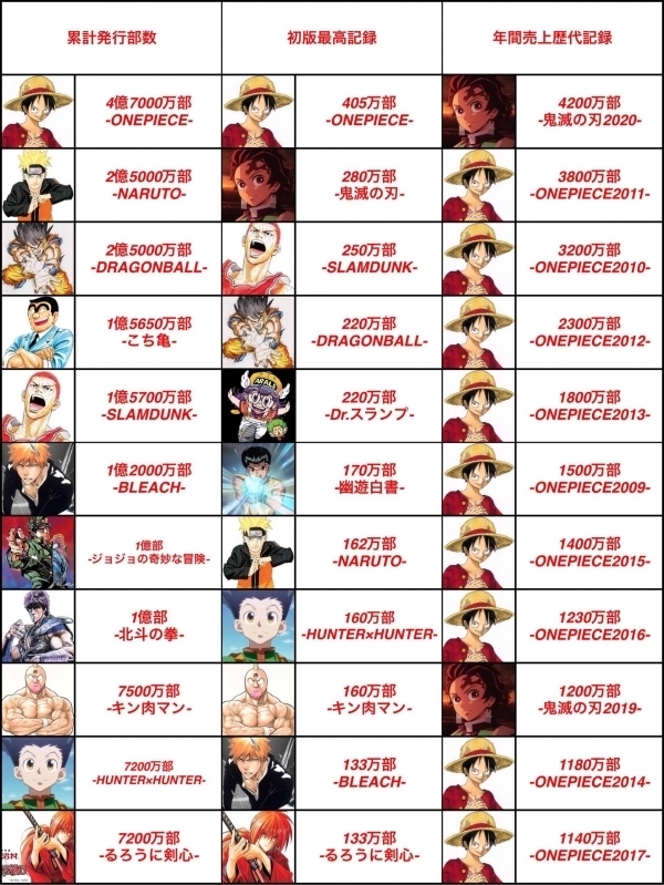【朗報】鬼滅の刃さん、ドラゴンボールとスラムダンクの最高初版を超えてしまうw