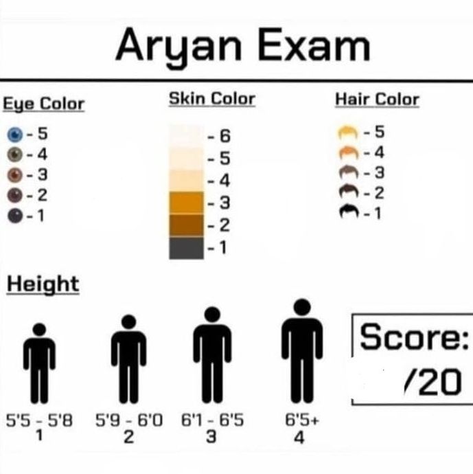 お前らはどれくらいアーリア人だ?俺は20点満点で10点だ