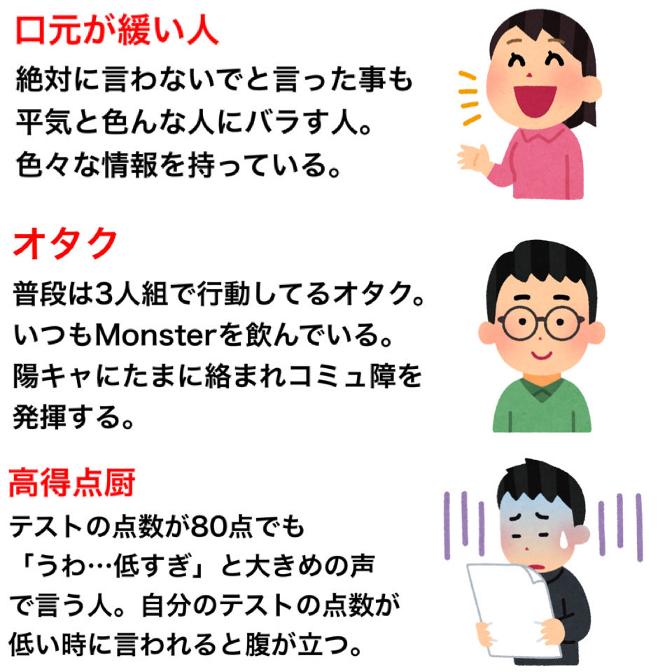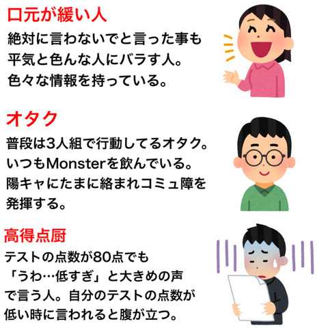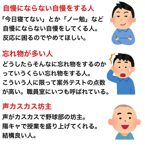 ホーム > ニュースetc > 【画像】クラスに必ずいる人一覧 VIPぁーはどれだった?wwwwwwwwwwwwwwwwwwww 2020/05/23 1:くーるびゅー:2020/05/23(土) 10:41:30 3:以下、?ちゃんねるからVIPがお送りします:2020/05/23(土) 10:42:14 俺、いない 続きを読む Source: ラビット速報 - ニュースetc