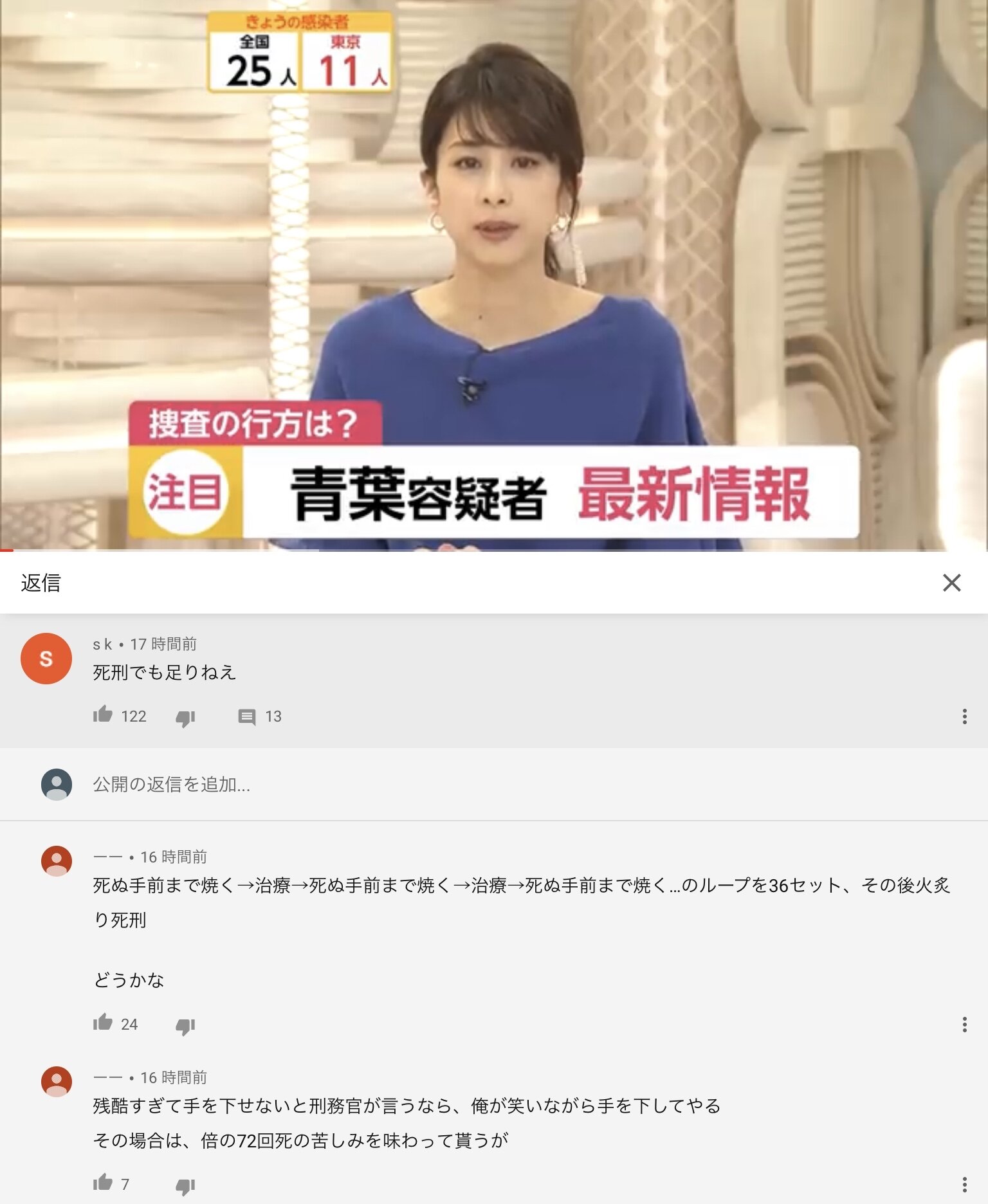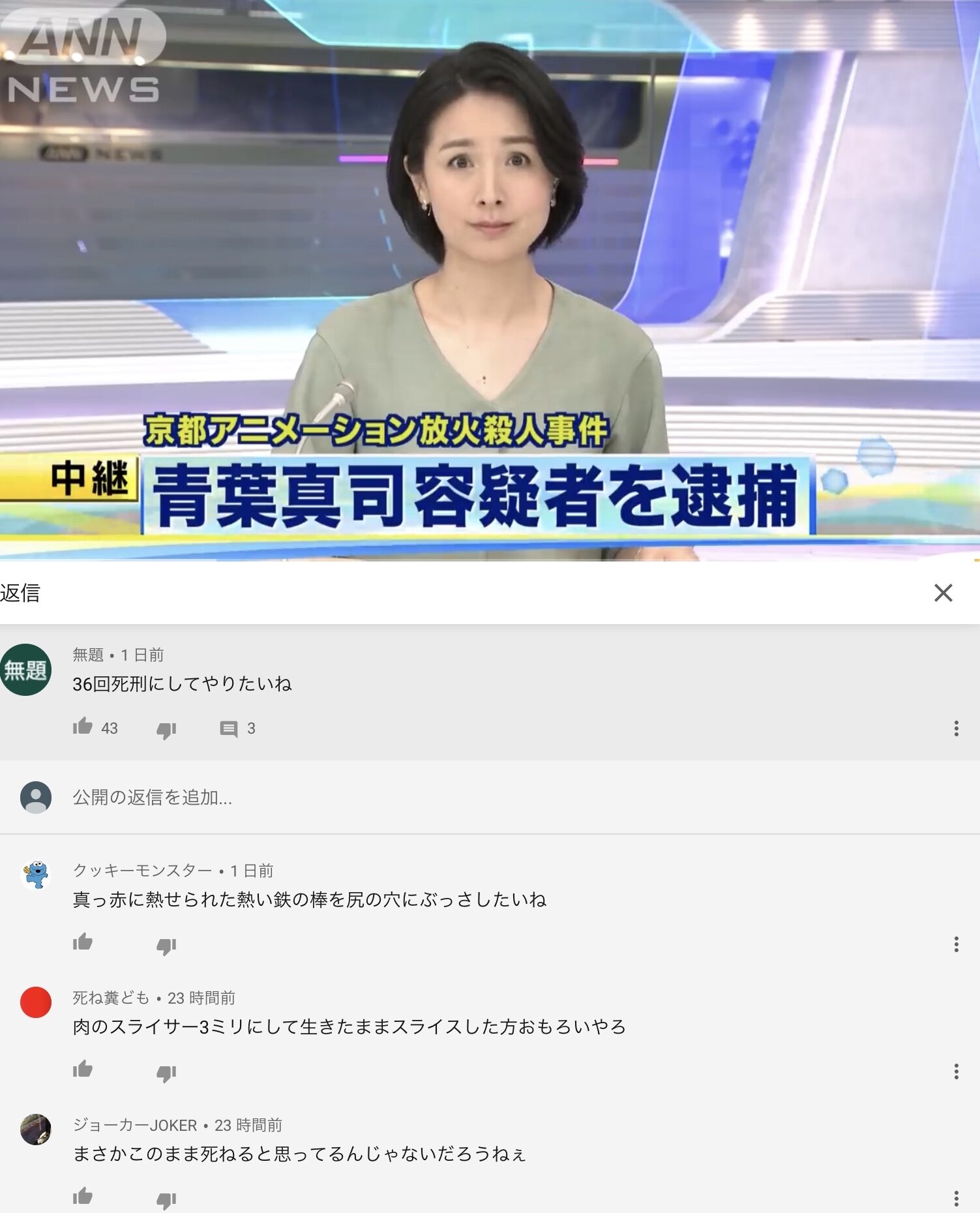 ホーム > ニュースetc > 【悲報】日本人「京アニ青葉は苦しませて殺せ」「地獄のような苦しみを与えろ」「腕から死なない程度に焼き治ったらまた焼き繰り返す」 2020/06/01 1: 以下、?ちゃんねるからVIPがお送りします 2020/05/31(日) 00:42:09.919 ID:rvrP5gQrd.net 続きを読む Source: 妹はVIPPER - ニュースetc