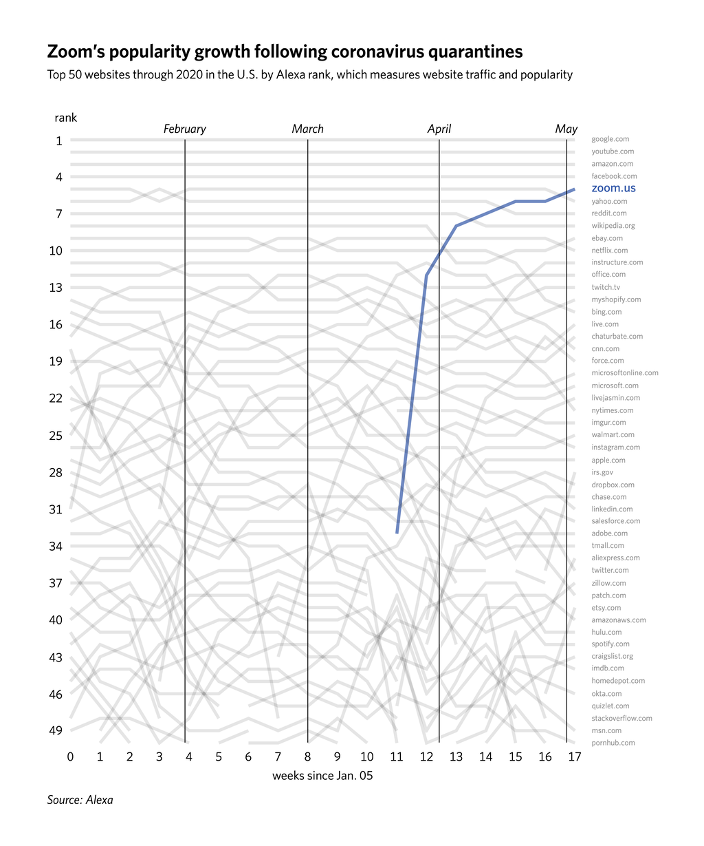 ZOOMがGAFAを超えたと話題に アクセス数が全米5位に上昇