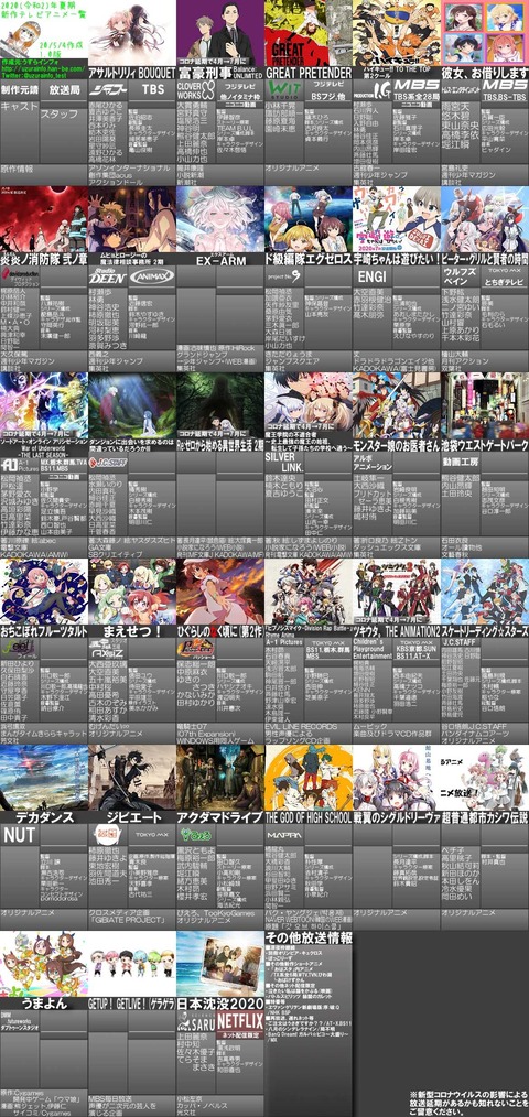 ホーム > ニュースetc > 【画像】2020年夏アニメ、延期&延期&延期でガチで終わるwwwwwwwwwwwww 2020/06/12 1:以下、?ちゃんねるからVIPがお送りします:2020/06/12(金) 01:05:30 続きを読む Source: ラビット速報 - ニュースetc