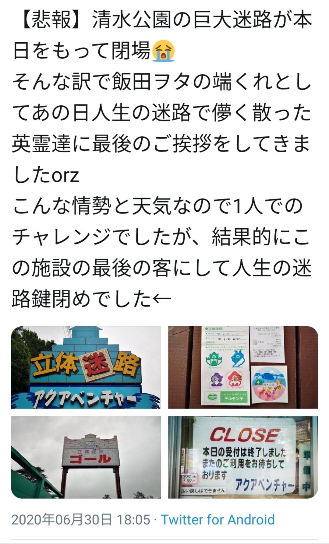 こんな情勢と天気なので1人でのチャレンジでしたが、結果的にこの施設の最後の客にして人生の迷路鍵閉めでした