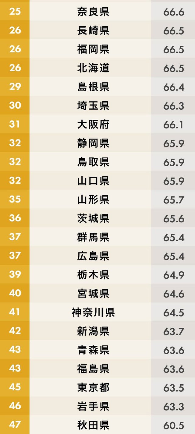 都道府県「幸福度」ランキングがこれwwwwww (※画像あり)