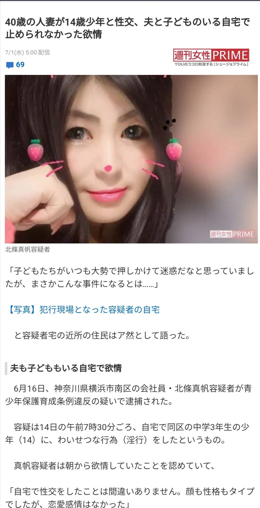 ホーム > ニュースetc > 【画像あり】40歳人妻、14歳少年とセックスし逮捕 2020/07/14 1: 風吹けば名無し 2020/07/10(金) 12:16:47.70 ID:H25Zdgqad.net 2: 風吹けば名無し 2020/07/10(金) 12:17:03.74 ID:CK+ok68b0.net きっつ 続きを読む Source: 妹はVIPPER - ニュースetc
