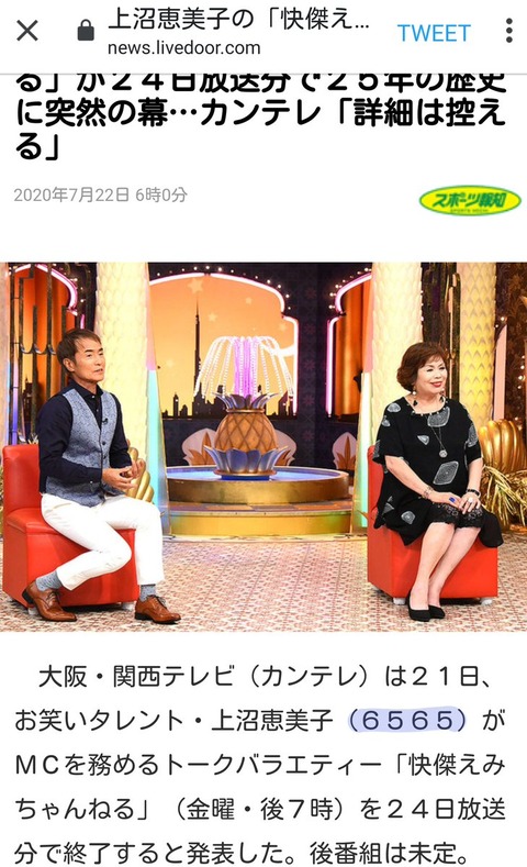 ホーム > ニュースetc > 【衝撃】上沼恵美子、衝撃の事実が発覚するwwwwww (※画像あり) 2020/07/22 1:風吹けば名無し:2020/07/22(水) 14:18:16 実は6565歳だった 2:風吹けば名無し:2020/07/22(水) 14:18:44 やっぱりな 4:風吹けば名無し:2020/07/22(水) 14:18:56 荒地の魔女 続きを読む Source: ラビット速報 - ニュースetc