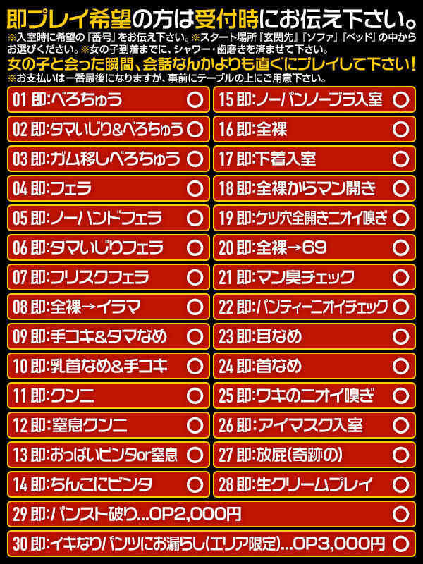 この画像以外にも普通のデリヘルにあるオプションは大体ある