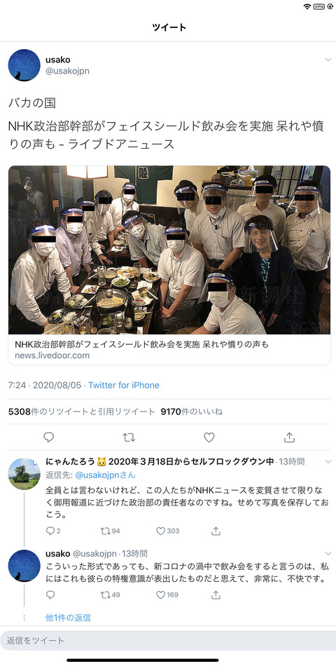 【画像】NHKさん、こんな時に飲み会開催wwwwwwwwwwwww