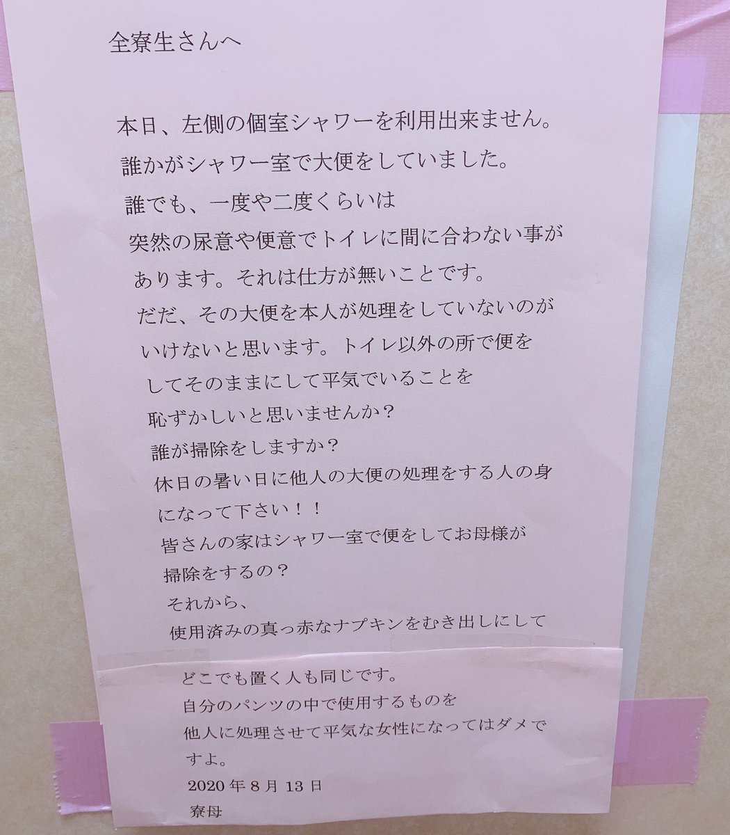 ホーム > ニュースetc > 【悲報】寮の風呂でウンコしただけの寮生さん、寮母さんにガチギレされてしまう…… 2020/08/14 1: 風吹けば名無し 2020/08/14(金) 00:12:53.71 ID:9EuQ84A90.net この寮 マジで治安悪いな。 https://twitter.com/nin_ja94/status/1293872289763614732 2: 風吹けば名無し 2020/08/14(金) 00:13:06.61 ID:9EuQ84A90.net これはヤバすぎやろ…… 続きを読む Source: 妹はVIPPER - ニュースetc