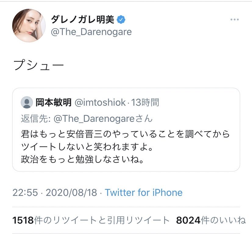 — ダレノガレ明美 (@The_Darenogare) August 18, 2020