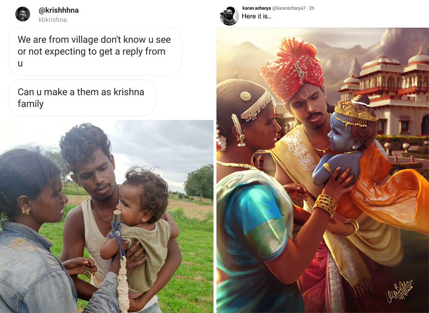 スレッド「写真を神話っぽくしてと絵師に頼むと彼は素晴らしいものを届けてくれる」より。インドのKaran Acharyaというアーティストの作品が海外で話題を集めていたので反応とともにまとめました。