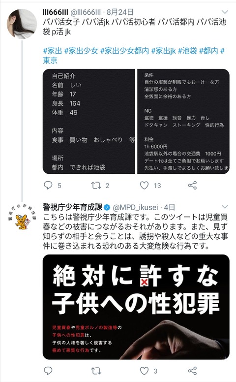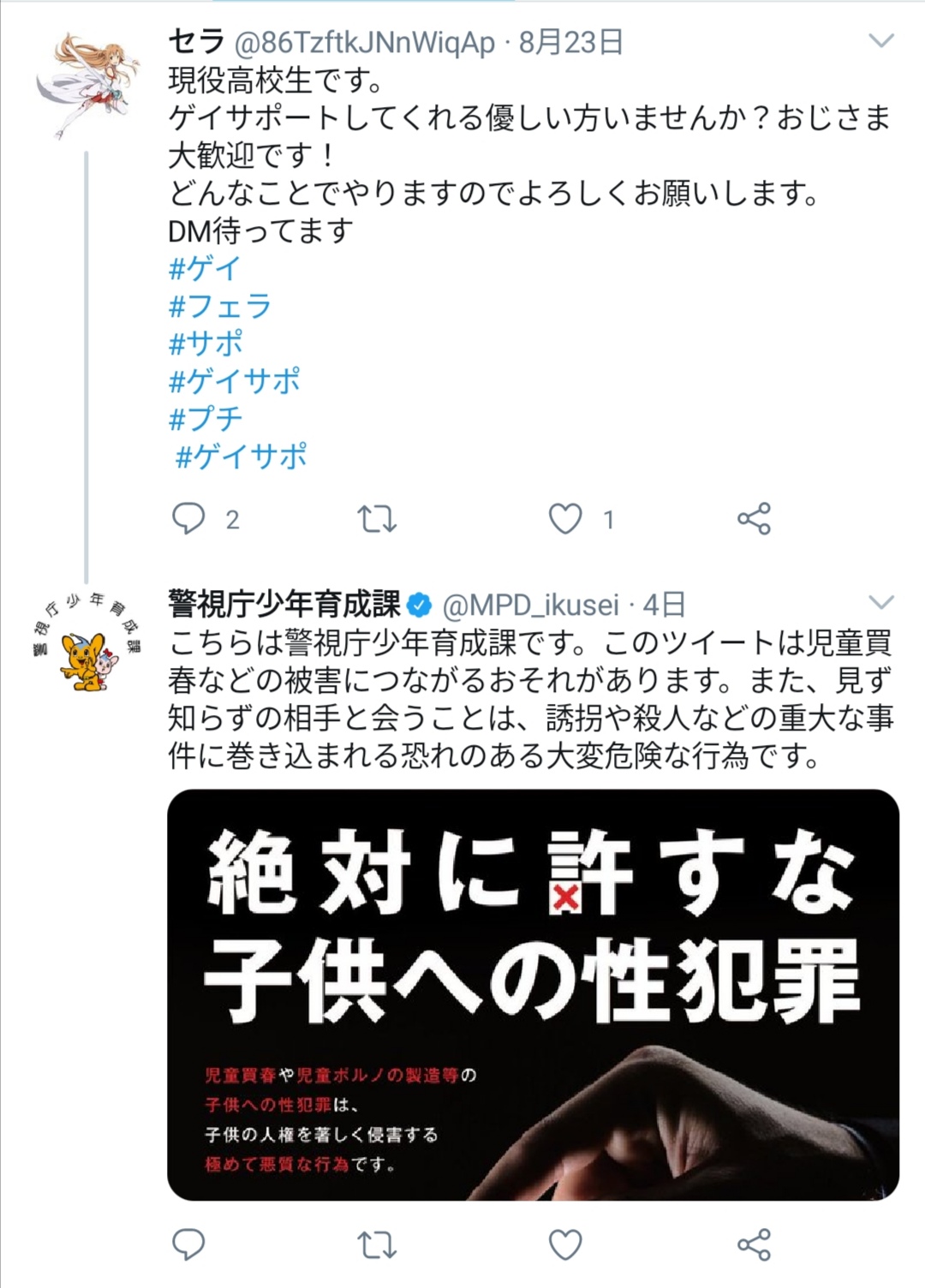【画像】パパ活JK「パパ活募集中です!」警察「!!!!」wwwwwwwww
