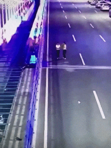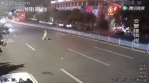 【GIF】女さん「車向かってきてるけど轢かれないっしょ、だって私女やし」