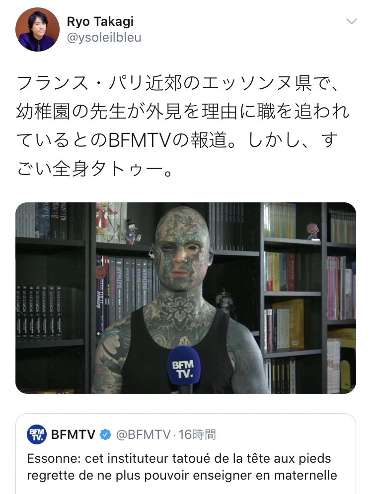 【画像】フランスの幼稚園の先生、ちょっとタトゥーを入れただけでクビになってしまうwwwwwwwww