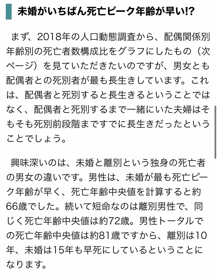 【悲報】独身男性の平均寿命が若すぎると話題に・・・