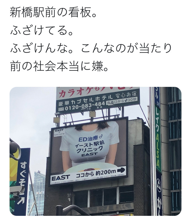 新橋駅に下品な広告登場、私たちの体を消費している😡 (※画像あり)