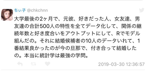 女「統計学を用いて大学最後の3ヶ月で最高の結婚相手を選びました」 旦那「ウンチぶりぶり」