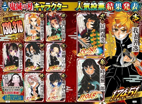 我妻善逸「禰豆子ちゃん(12)好き!禰豆子ちゃん(12)結婚して!」←こいつが人気1位という事実