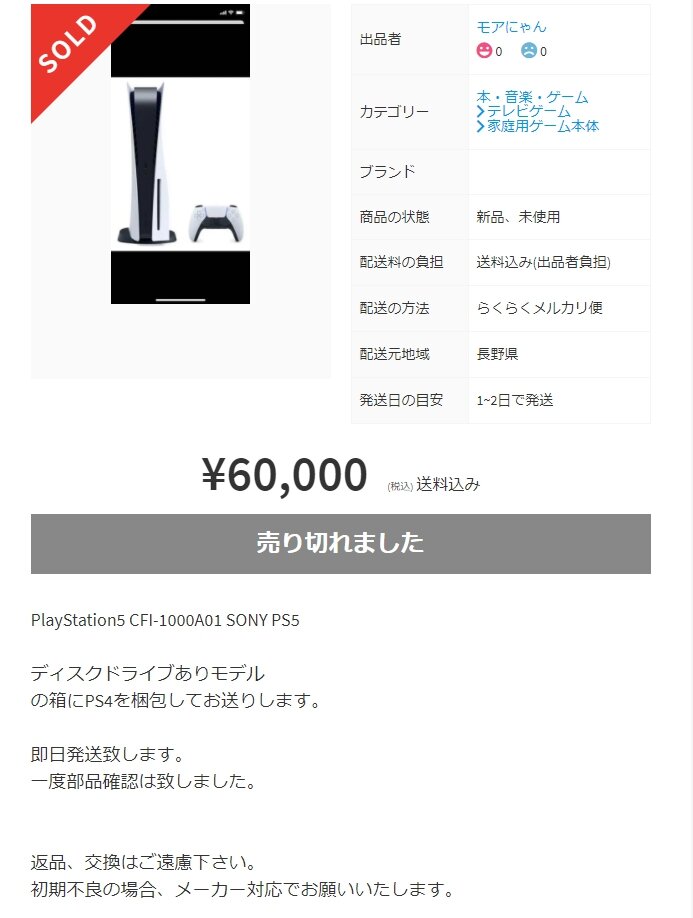 ホーム > ニュースetc > 【悲報】PS5の転売屋、ついに禁断の領域に踏み込む 2020/11/14 1: 風吹けば名無し 2020/11/13(金) 19:55:48.48 ID:wKLCyDLe0.net ええんか…? 続きを読む Source: 妹はVIPPER - ニュースetc