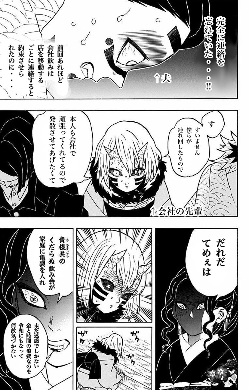 【悲報】女さん「飲み会に行く全ての夫へ……」【鬼滅】