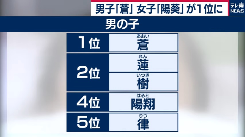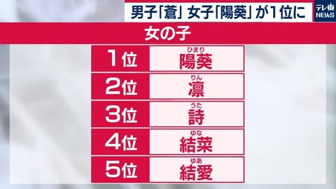 【画像】今年最も赤ちゃんに命名された名前ランキングwwwww