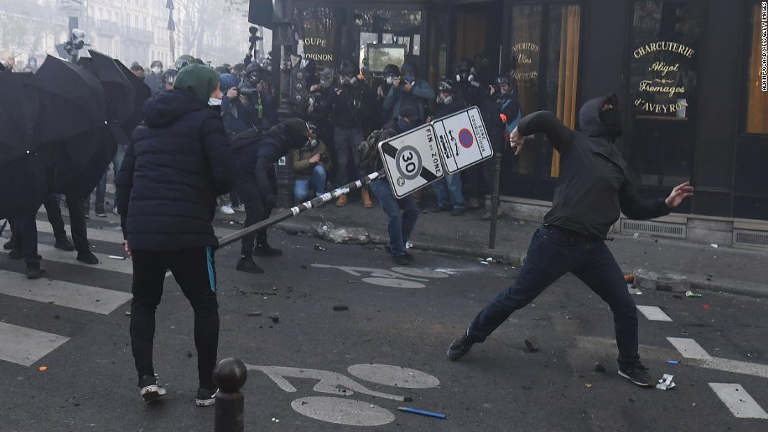 フランスの緊張が高まる中、デモ参加者と治安部隊の衝突も発生した。