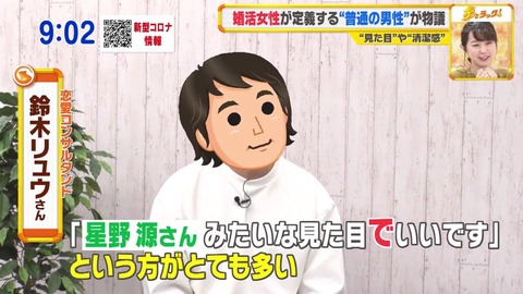 【悲報】女さん、顔は星野源くらい、年収500万円以上が「普通の男性」と認識している模様wwwwwwwwwwwwwwwwwww