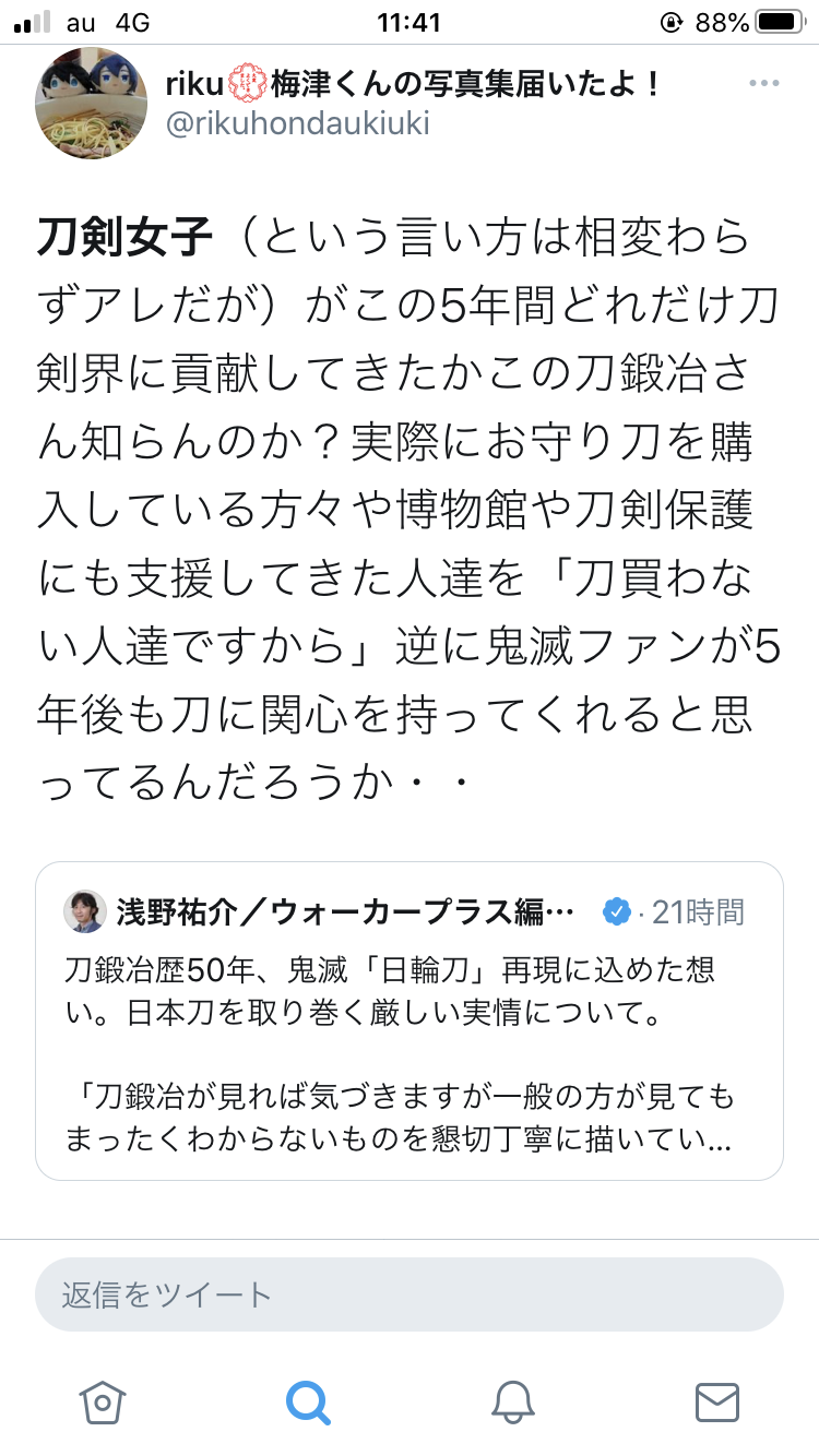 刀鍛冶「鬼滅の人気で刀に興味を持ってくれる方が増えて嬉しい。以前も流行ったが中々刀購入まで至る人は少なかった。」