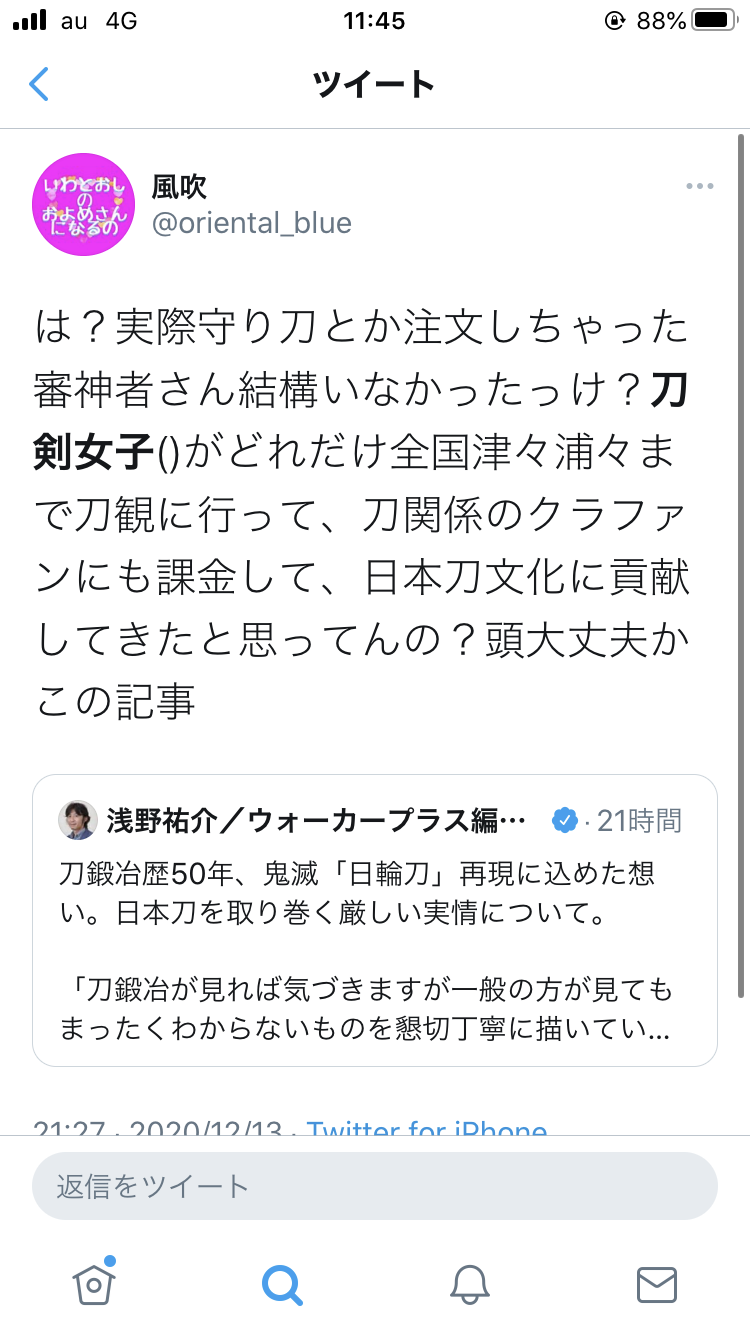 【悲報】刀鍛冶「鬼滅のおかげで刀が売れて嬉しい」刀剣女子「ギャオオオオオン!!」