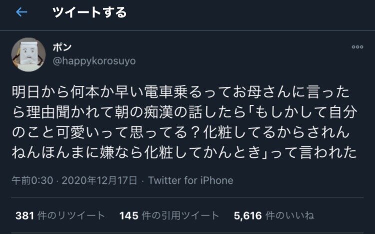 【画像】痴漢にあったJKさんが母親に言われたこと