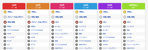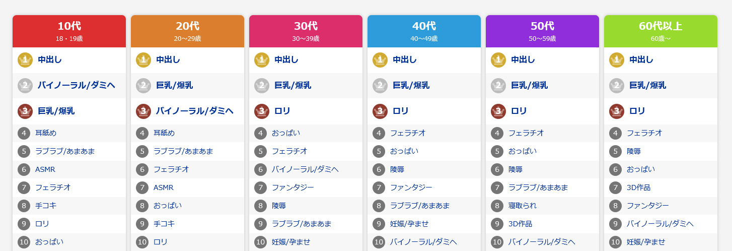 【画像】DLSite、性癖ランキングを年齢別で公開wwwwwwwwwwwwwwwww