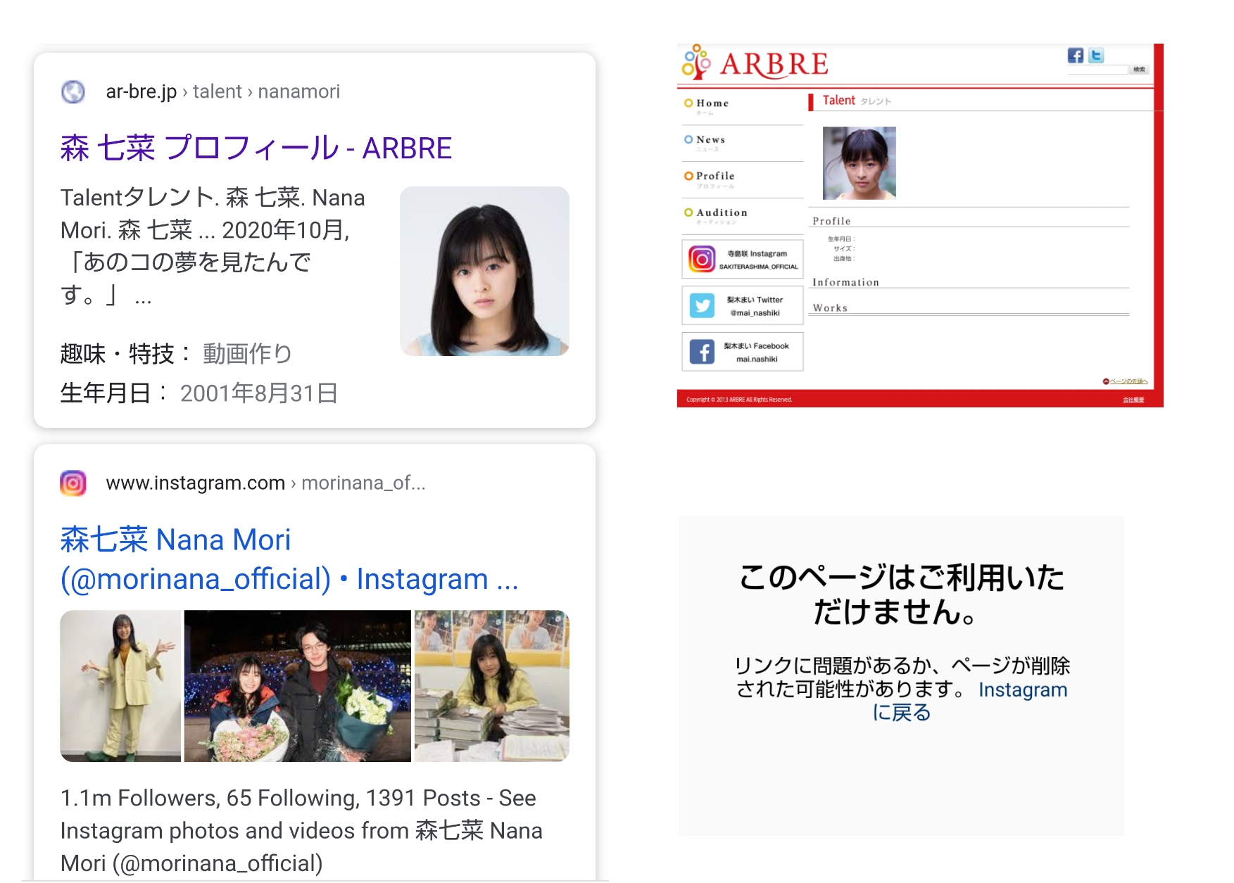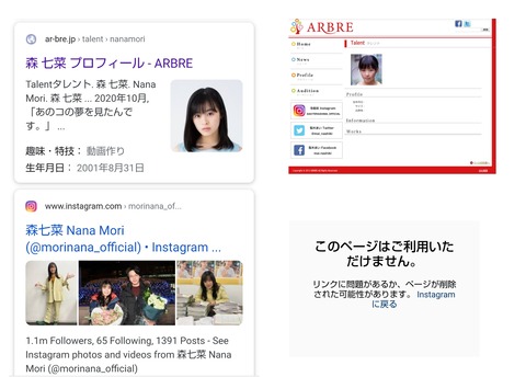 【悲報】若手女優の森七菜さん、事務所HPから何故か削除される