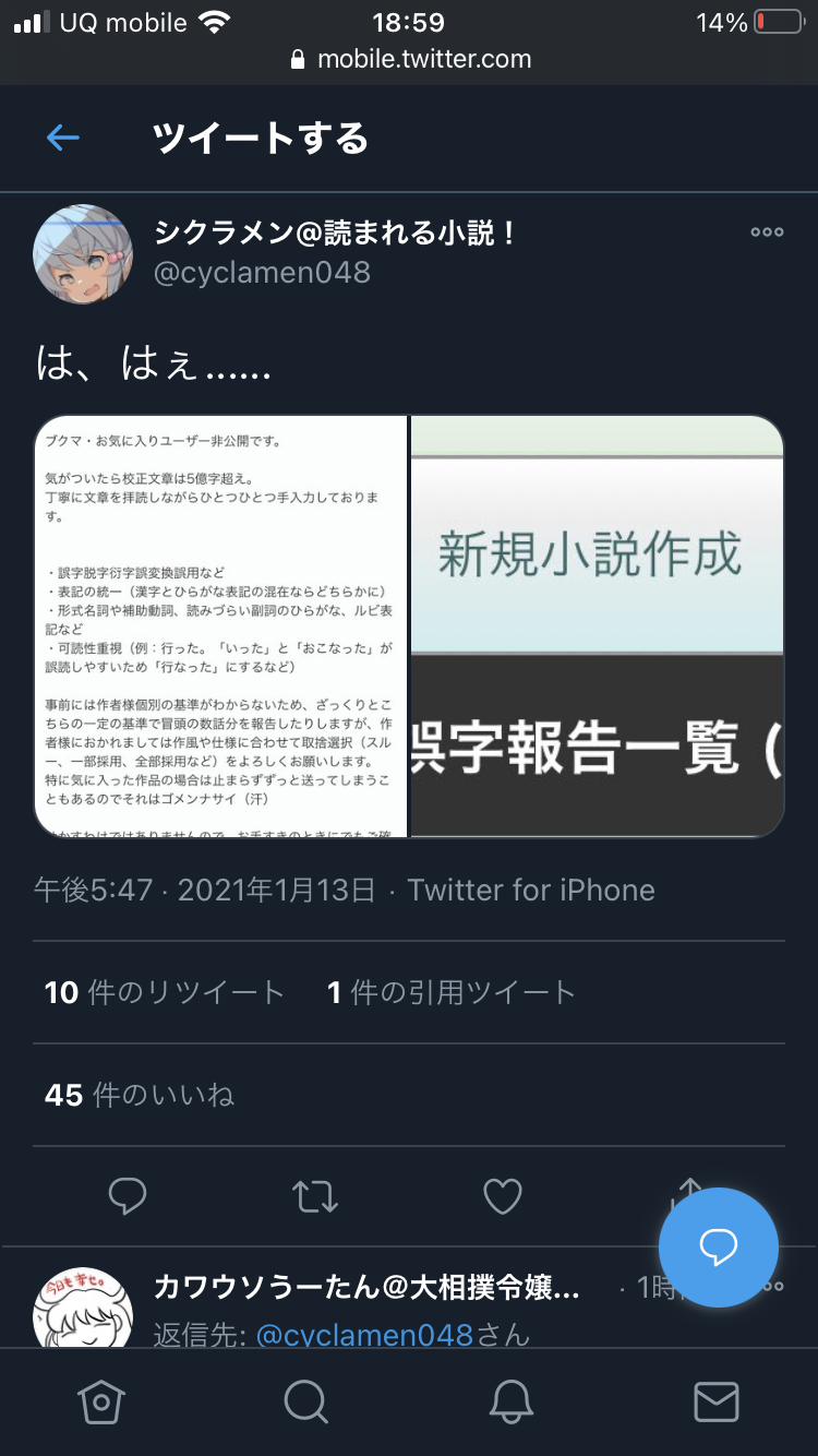 ホーム > ニュースetc > 【画像】底辺なろう作家さん、知らない素人に1000件誤字報告されてしまうwwwwwwwwww 2021/01/14 1:以下、?ちゃんねるからVIPがお送りします:2021/01/13(水) 19:44:07.977 ID:NKnHRxB70.net これもうホラーだろ 2:以下、?ちゃんねるからVIPがお送りします:2021/01/13(水) 19:44:36.366 ID:NKnHRxB70.net フリーの校閲ってなんだよ…… 続きを読む Source: ラビット速報 - ニュースetc