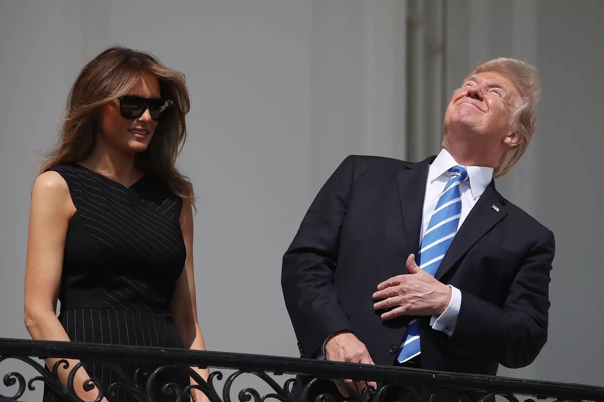 まずは皆既日食の時に太陽を直接見つめるトランプ