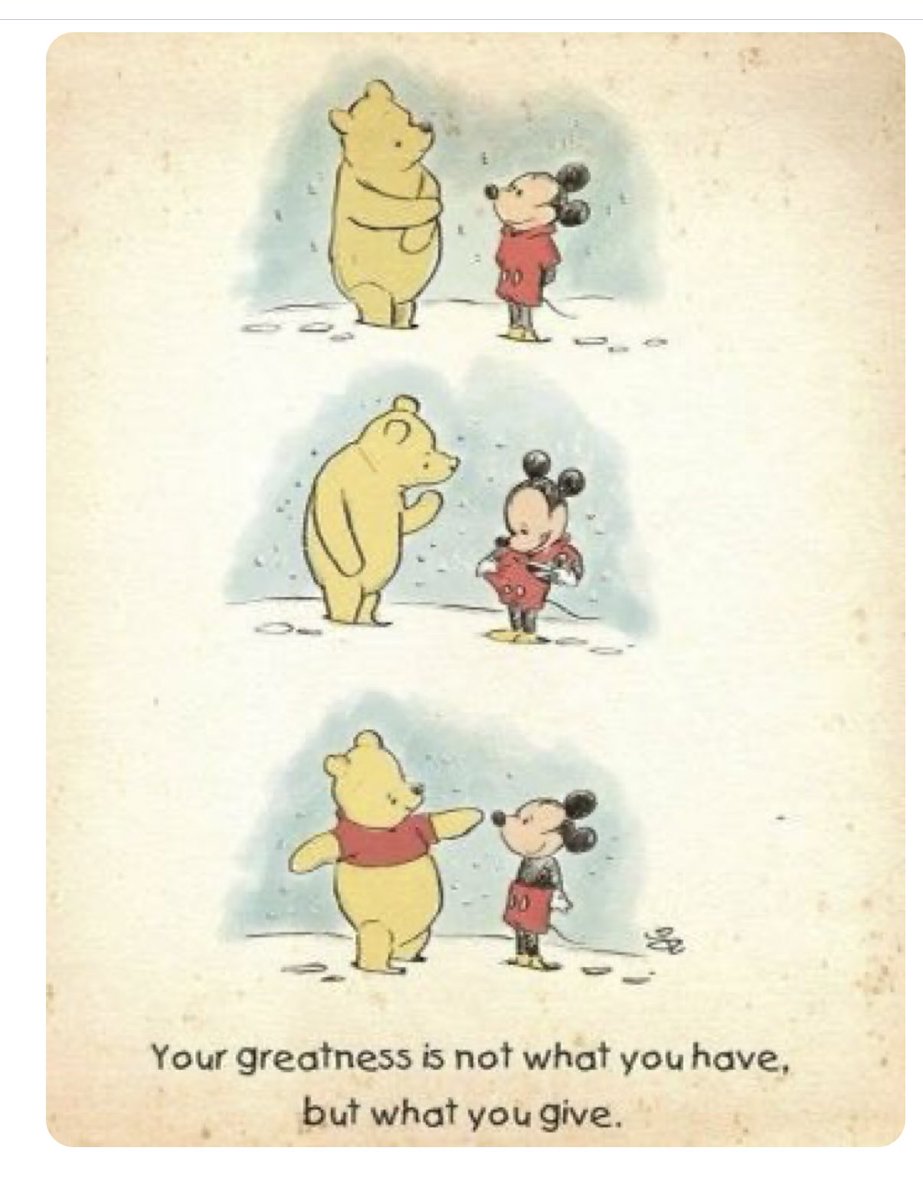 プーさんが裸で寒そうだったからミッキーが自分の服の上半分切ってプーさんにあげたんだそうな
