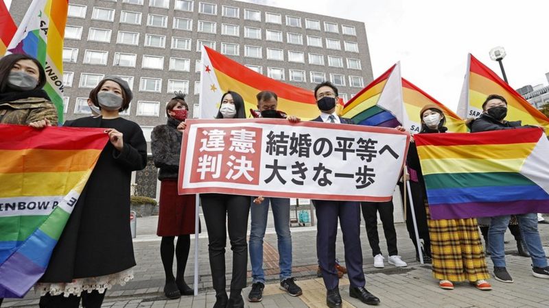 札幌地方裁判所は17日、同性婚を認めないのは「違憲」とする判断を示した。日本の憲法24条では、婚姻は「両性」の間で成立すると規定されている。世界の主要7カ国(G7)で同性婚を認めていないのは日本だけ。原告の同性カップル3組は、この規定は同性婚を否定していないと主張。同性同士の婚姻届を受理しないのは憲法24条のほか、幸福追求権を定める13条、法の下の平等を定める14条に違反するとして、国に対して1人当たり100万円の損害賠償を請求していた。札幌地裁は、このうち法の下の平等を定めた14条に違反するとの判断を下した。一方、13条と14条については違憲には当たらないとし、原告の請求を棄却した。原告団の1人の中島愛さんはBBCの取材に対し、「日本にとって大きな一歩となった(中略)夢の実現に一歩近づいた」と話した。(BBC)