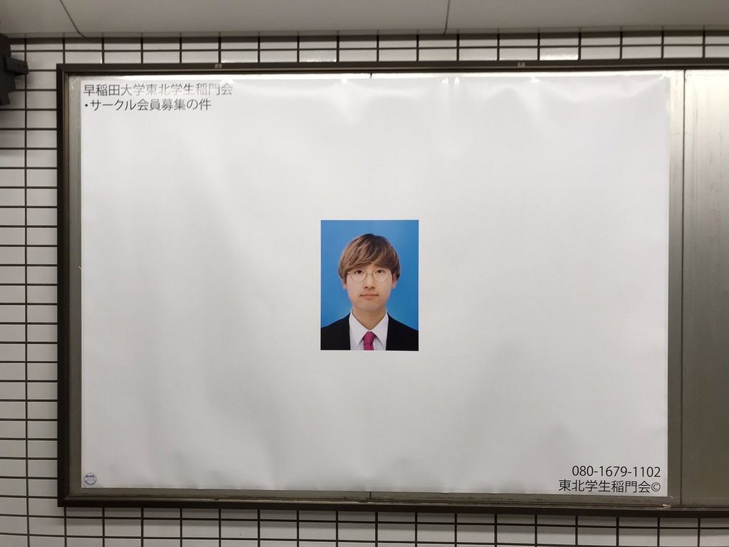 早稲田大学生、サークルの広告をと間違えて自分の証明写真を駅に掲載してしまうwwww (※画像あり)