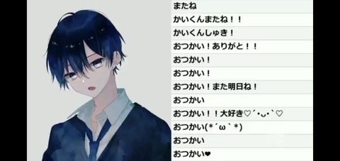 >>8何だったか忘れたが配信主の中の人がミスして映ってしまい女性ファンが阿鼻叫喚する直前の図