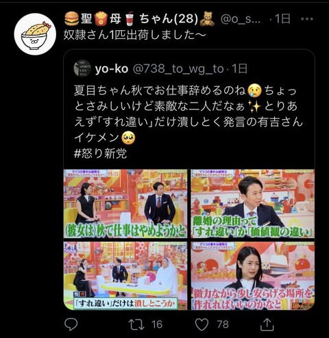 夏目三久「微力ながらお互いが安らげる場所を作りたい」 フェミニスト「奴隷さん1匹出荷しました~」
