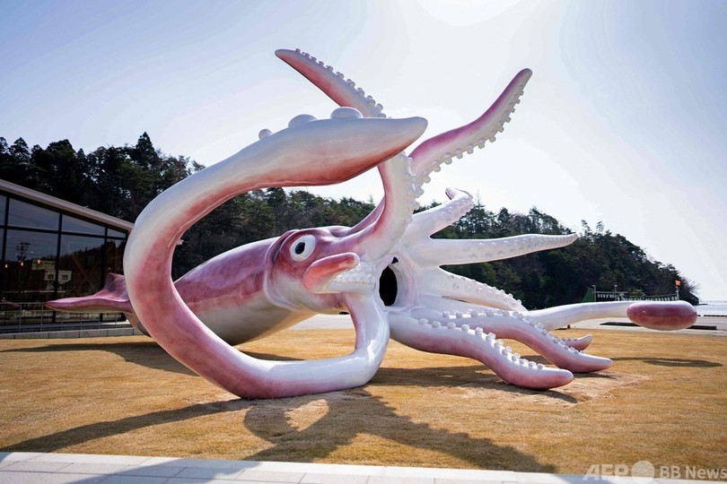 石川県能登町が設置したイカの巨大モニュメントが、賛否両論を呼んでいる。新型コロナウイルスの流行で打撃を受けた観光業の振興を目指すことを理由に、総工費2700万円の大半に国からのコロナ対策交付金が充てられたためだ。3月に姿を現した長さ13メートルのこのモニュメントは、能登町の特産品スルメイカをアピールするもの。町の広報部は6日、AFPの取材に応じ、観光業がコロナ流行の打撃を受けており、イカ漁など地元産業を支援するものを求めていたと説明。町の経済は最近の不漁からも影響を受けたと語った。ゴールデンウイークの連休中には親子連れなど多数の人が像を見に訪れ、ソーシャルメディアに写真を投稿したりしたという。ツイッターには、不要不急のものに税金を使うのは間違っているとの非難が上がる一方、子どもが遠足で訪れる予定なので撤去はしてほしくないなどといった肯定的な声も上がっている。(AFP)
