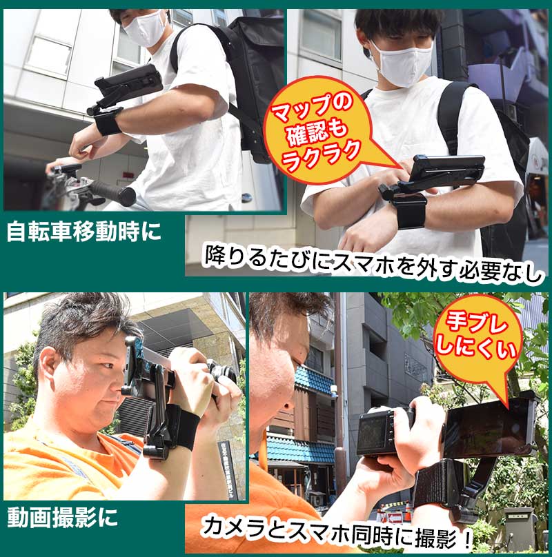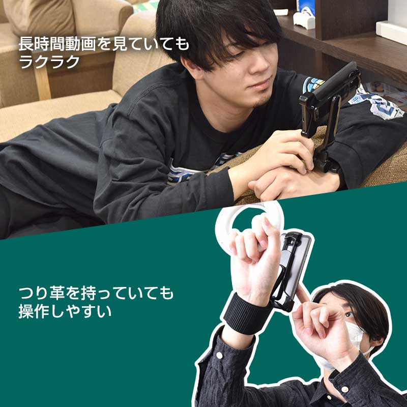 ハンズフリースマートフォン。自由自在に角度を変えられて持たずに操作できるスマホ用アームバンド