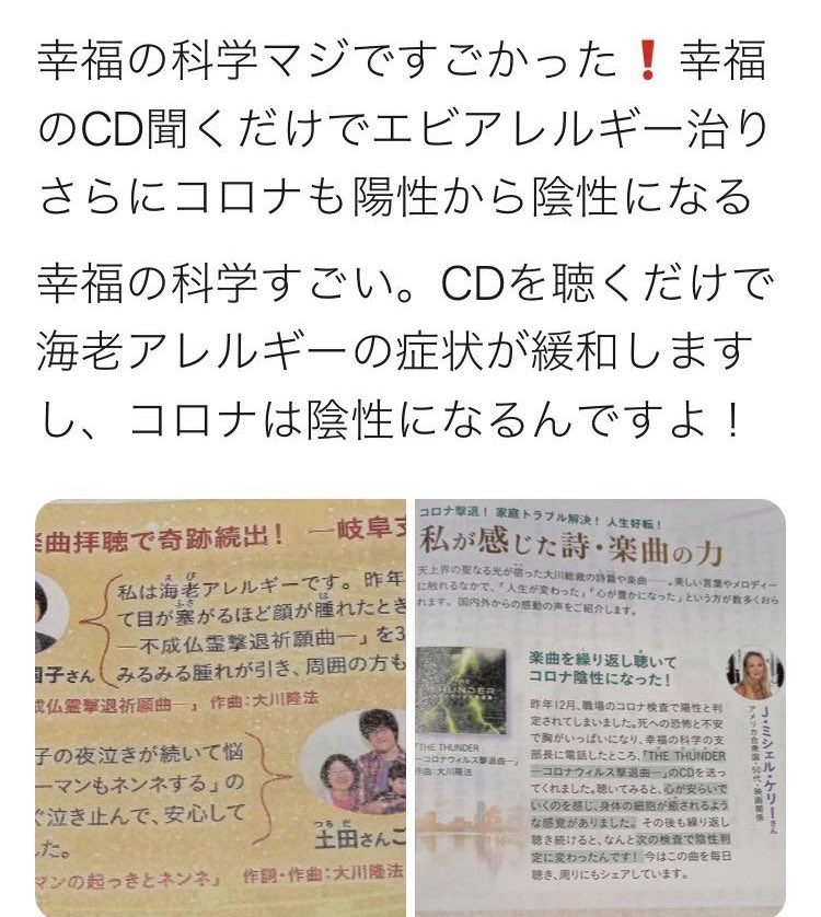 ホーム > ニュースetc > 【画像】千眼美子さんがぴしゃり「幸福の科学のCD聞けばコロナは治る。」 2021/06/08 1: 名無し募集中。。。 2021/06/05(土) 12:10:47.85 0.net ソース画像 続きを読む Source: 妹はVIPPER - ニュースetc